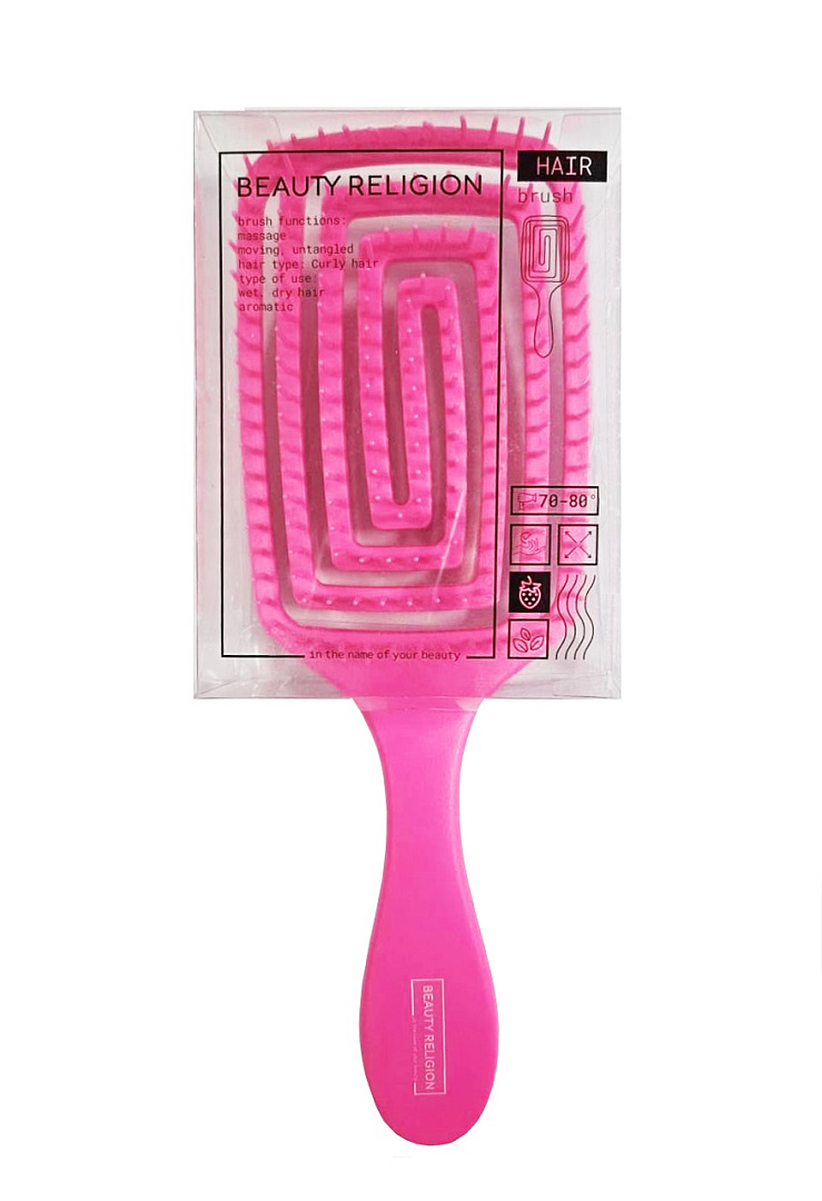 —[BEAUTY RELIGION] Расческа массажная/распутывающая РОЗОВАЯ С АРОМАТОМ ЗЕМЛЯНИКИ Massage brush aroma strawberries, 1 шт