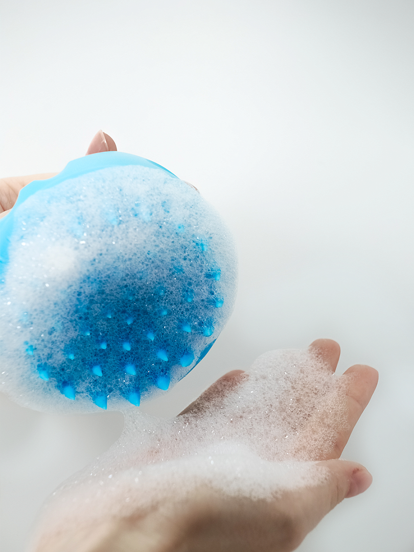 Щетка оказывает глубокое очищающее воздействие, увеличивая эффективность использования шампуня: взбивает средство в густую пену, тщательно распределяет по коже головы и корням волос, не спутывая и не повреждая локоны. Усиливает приток питательных веществ к волосяным фолликулам, укрепляя структуру волоса и препятствуя ломкости и выпадению.
